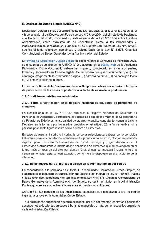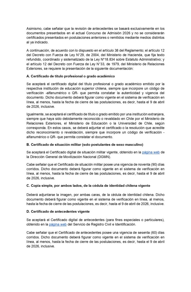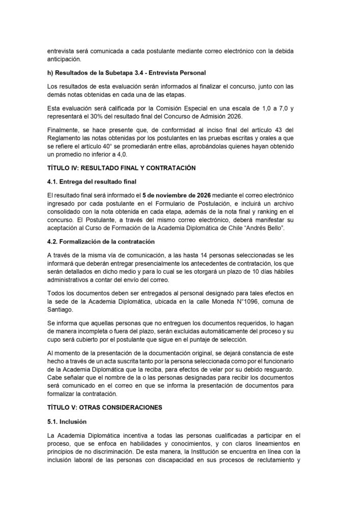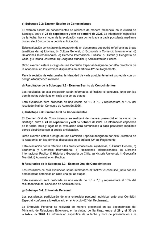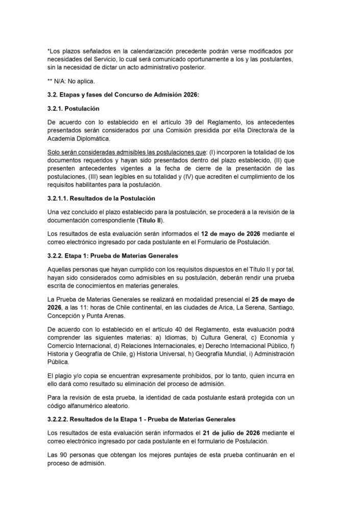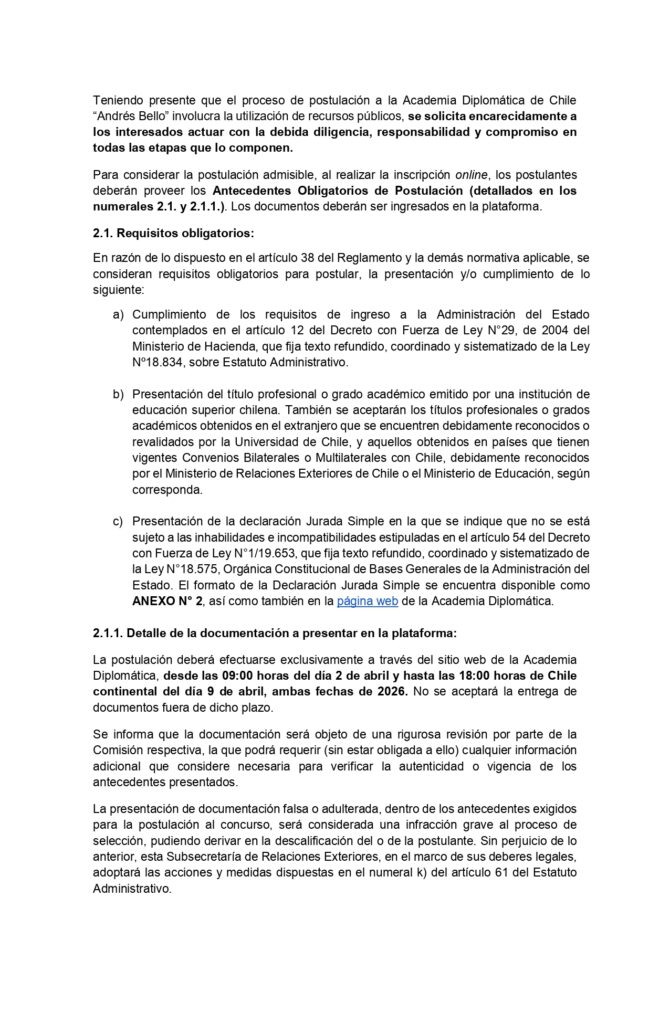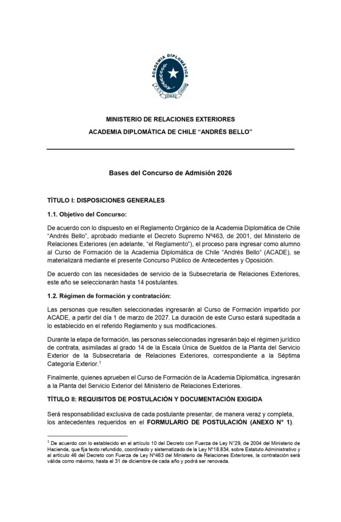 Bases Concurso de Admisión 2026 - Academia Diplomática de Chile Andrés Bello